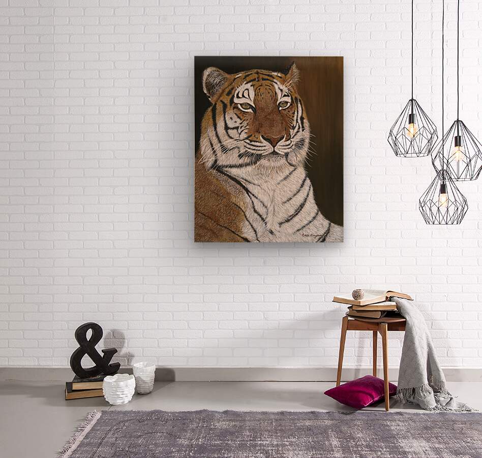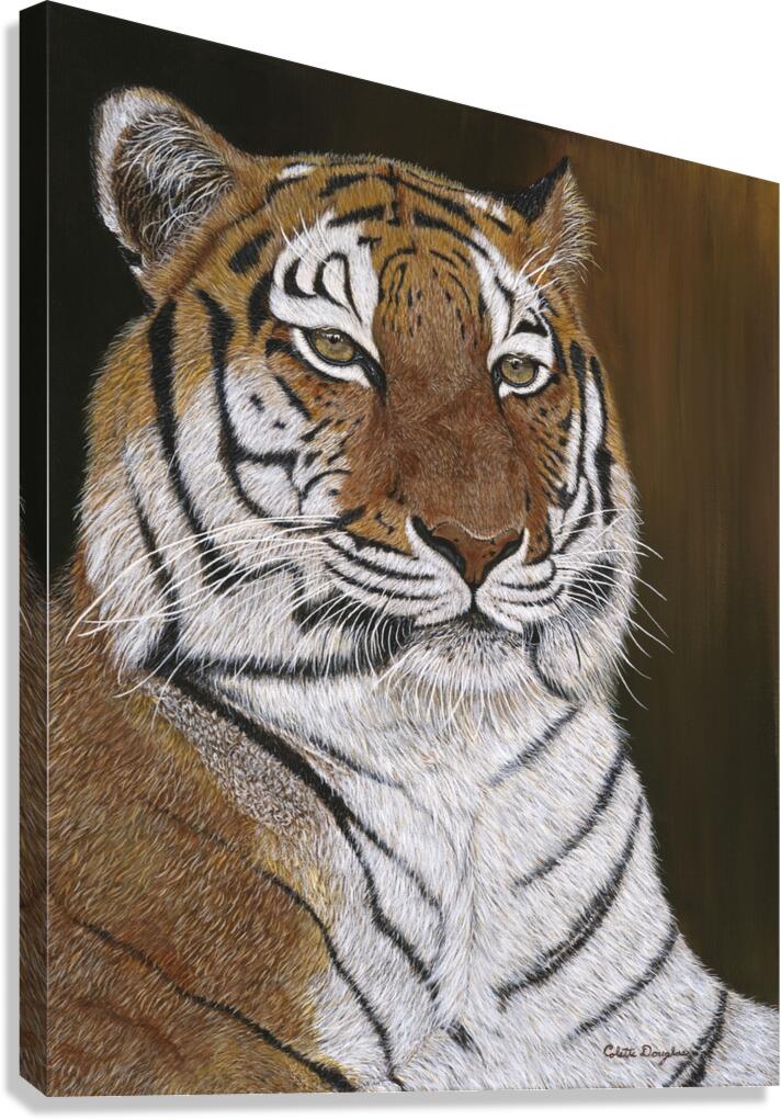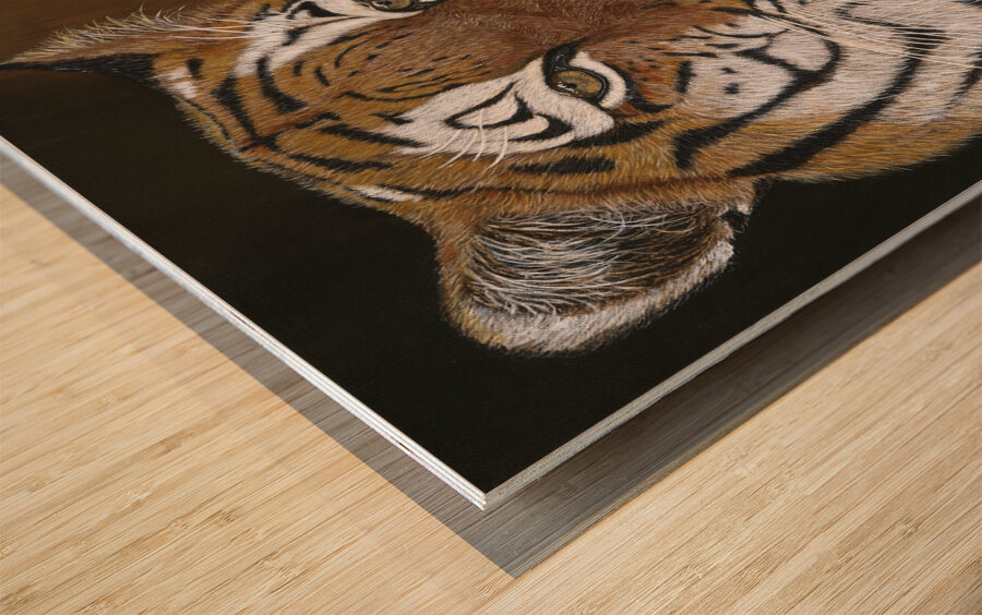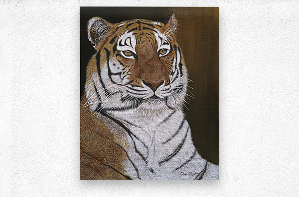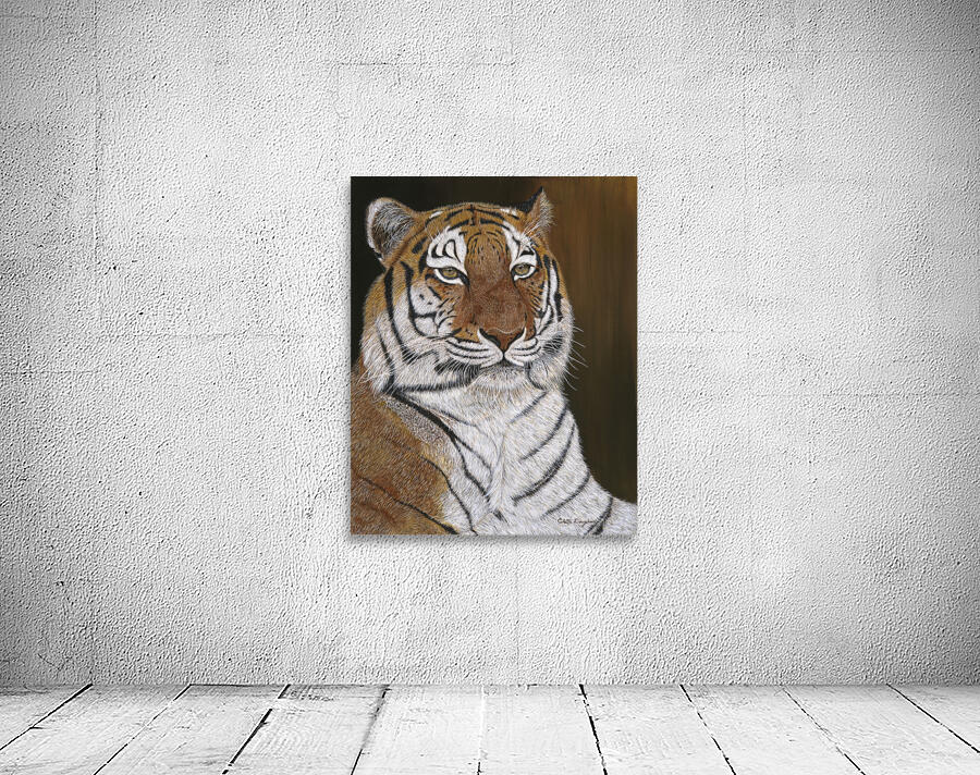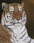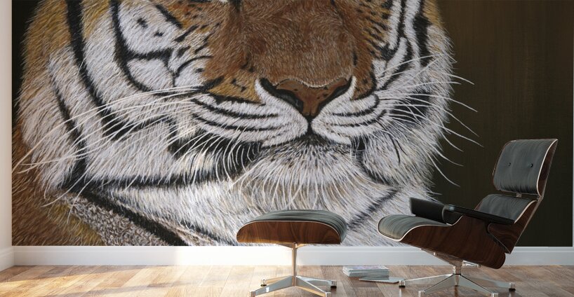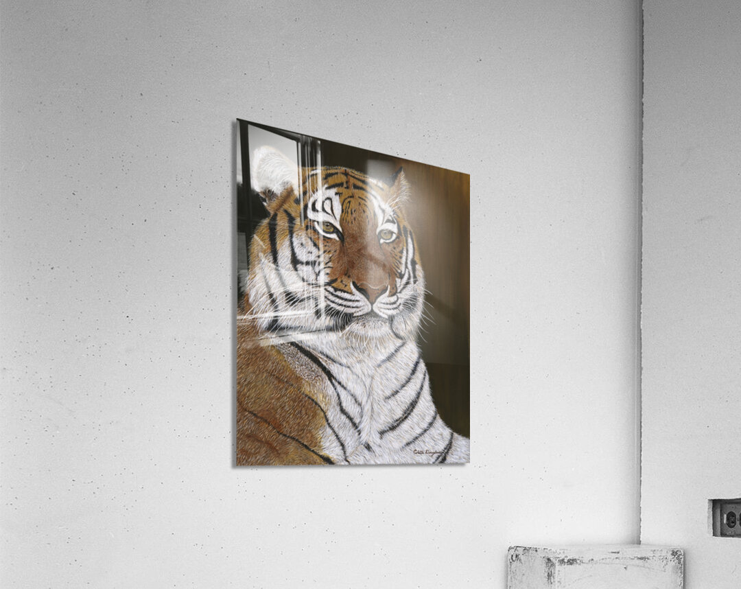 This is a portrait of a tiger resting in the middle of the day to avoid the heat. This majestic animal was painted in acrylic on canvas.
