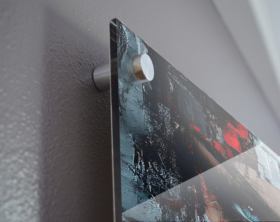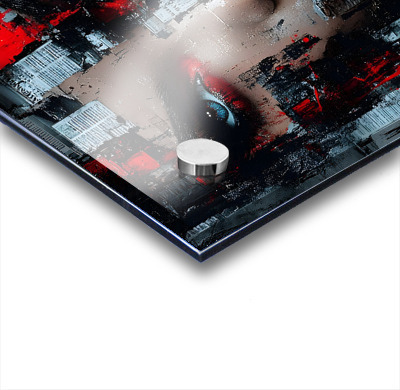 Impression sur acrylique avec entretoises ( cylindres métalliques )