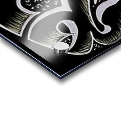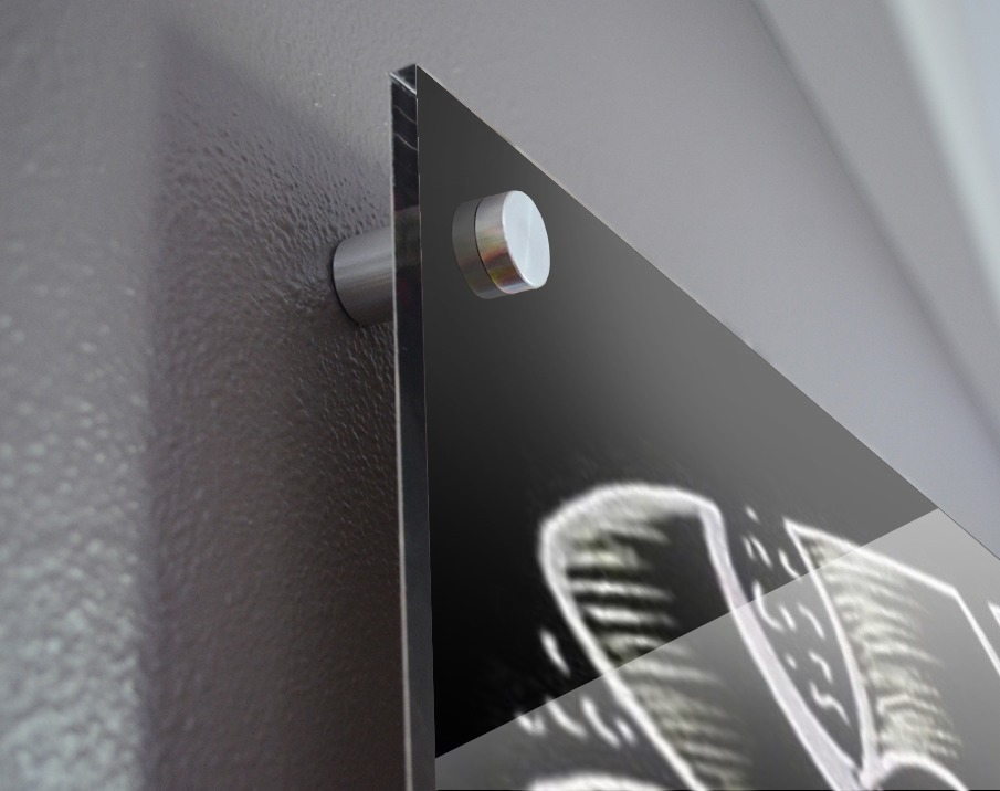 Impression sur acrylique avec entretoises ( cylindres métalliques )