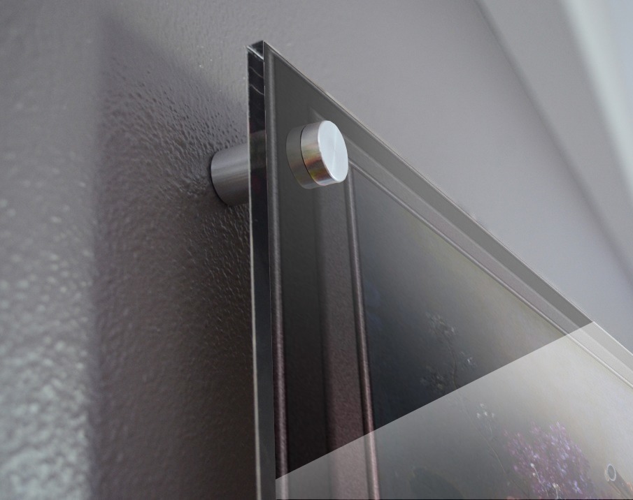 Impression sur acrylique avec entretoises ( cylindres métalliques )