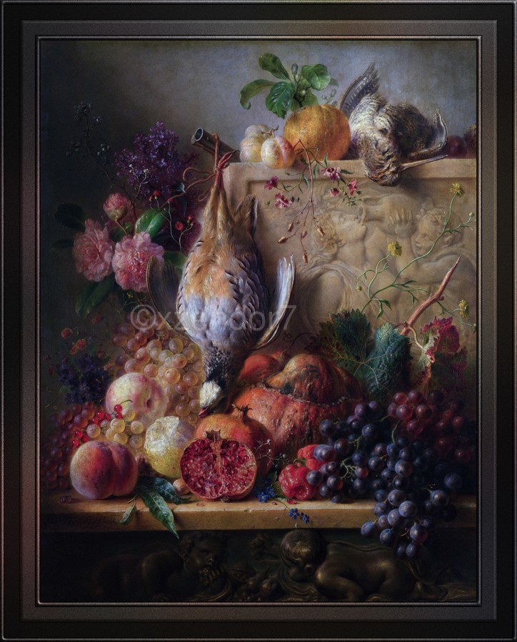 FLOWERS GAME AND FRUIT BY GEORGIUS JACOBUS JOHANNES VAN OS XZENDOR7  Impression sur toile
