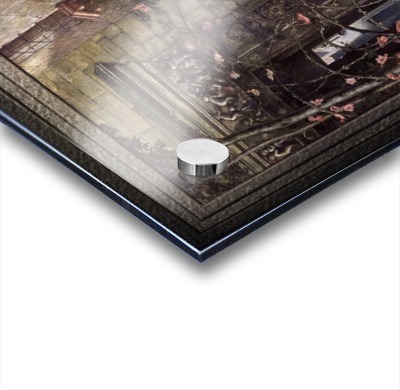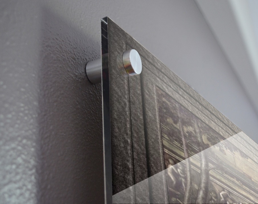 Impression sur acrylique avec entretoises ( cylindres métalliques )