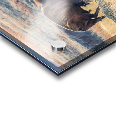 Imprimé jusqu’au bord et prêt à être accroché, avec 4 cylindres (entretoises) en aluminium ( les vis murales sont incluses )