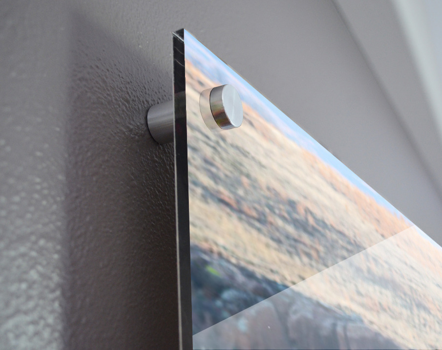 Impression sur acrylique avec entretoises ( cylindres métalliques )