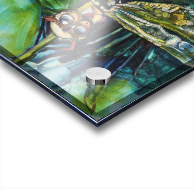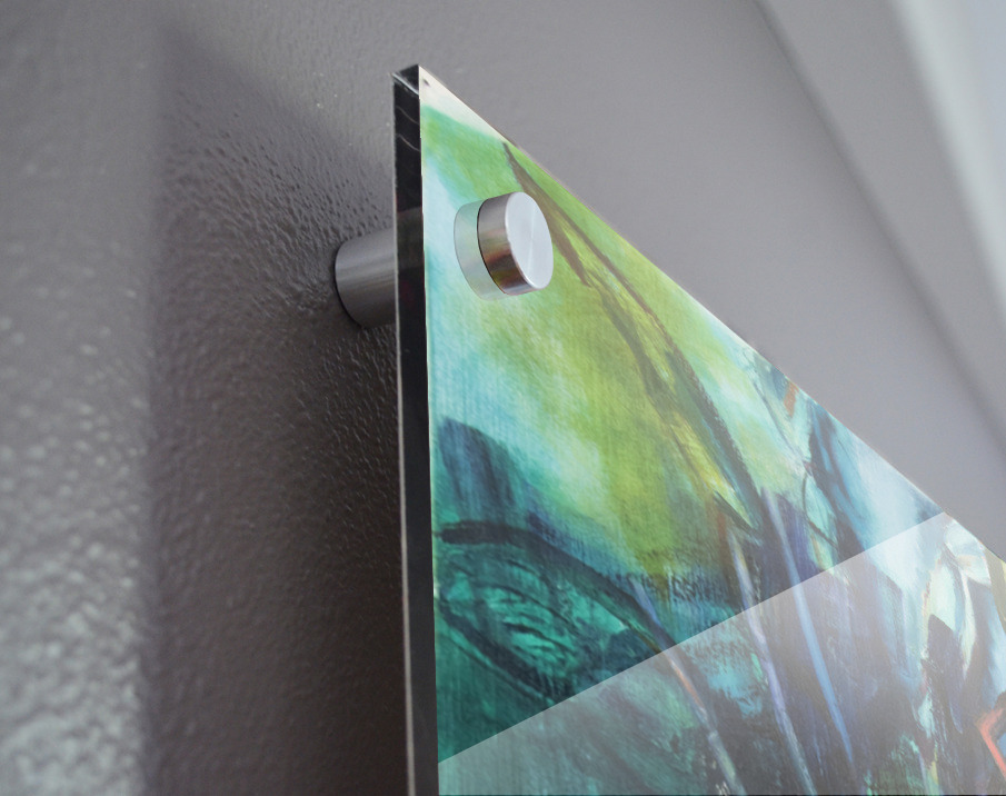 Impression sur acrylique avec entretoises ( cylindres métalliques )