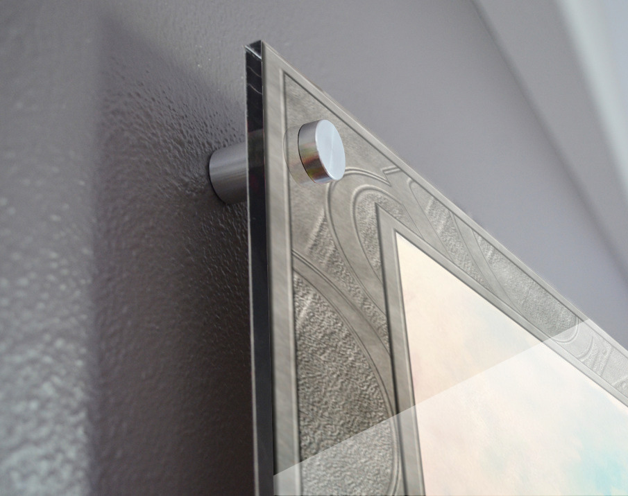 Impression sur acrylique avec entretoises ( cylindres métalliques )