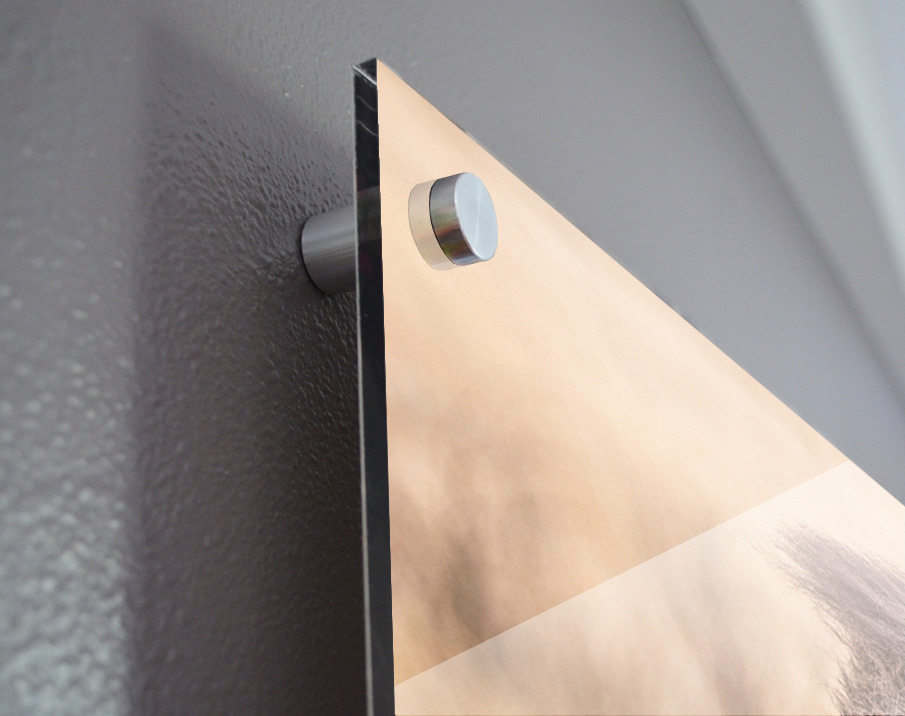 Impression sur acrylique avec entretoises ( cylindres métalliques )