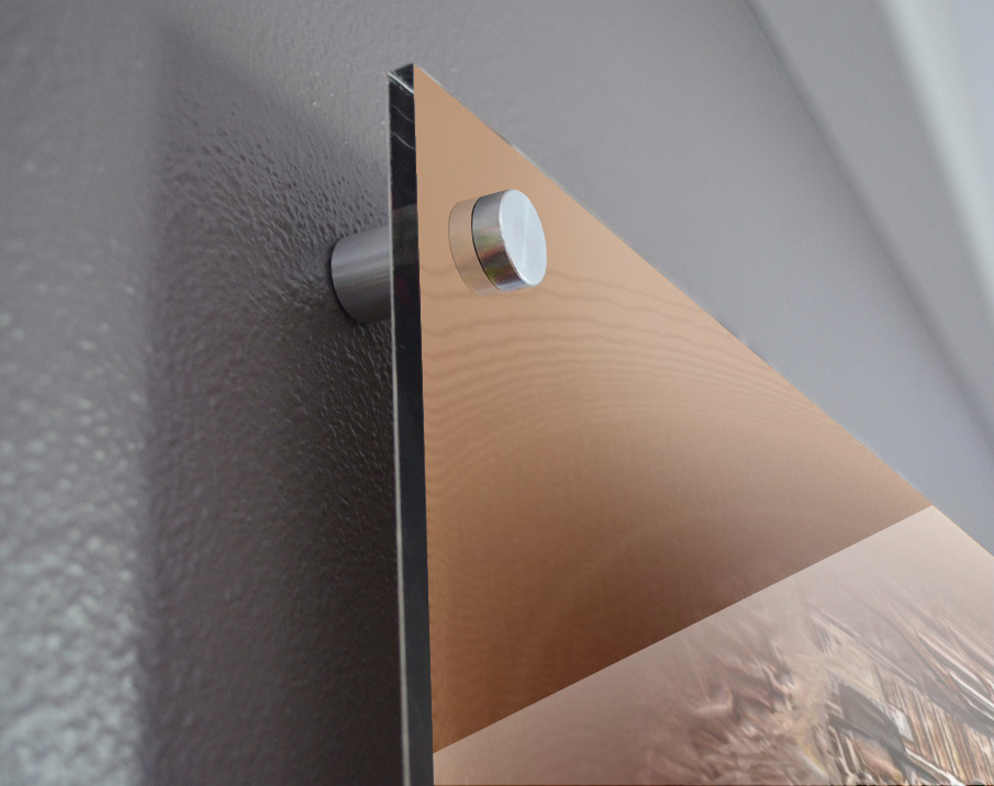 Impression sur acrylique avec entretoises ( cylindres métalliques )