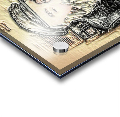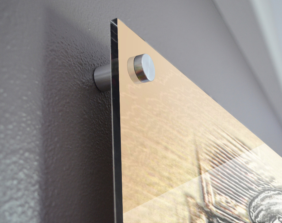 Impression sur acrylique avec entretoises ( cylindres métalliques )