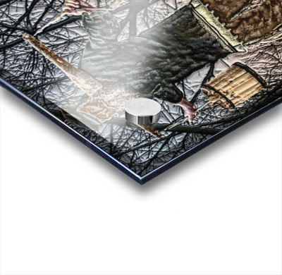 Impression sur acrylique avec entretoises ( cylindres métalliques )