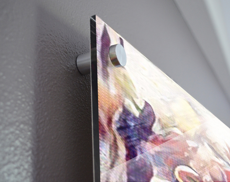 Impression sur acrylique avec entretoises ( cylindres métalliques )