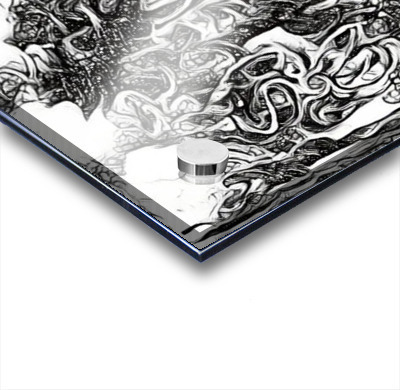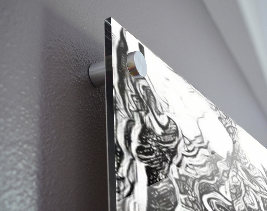 Impression sur acrylique avec entretoises ( cylindres métalliques )
