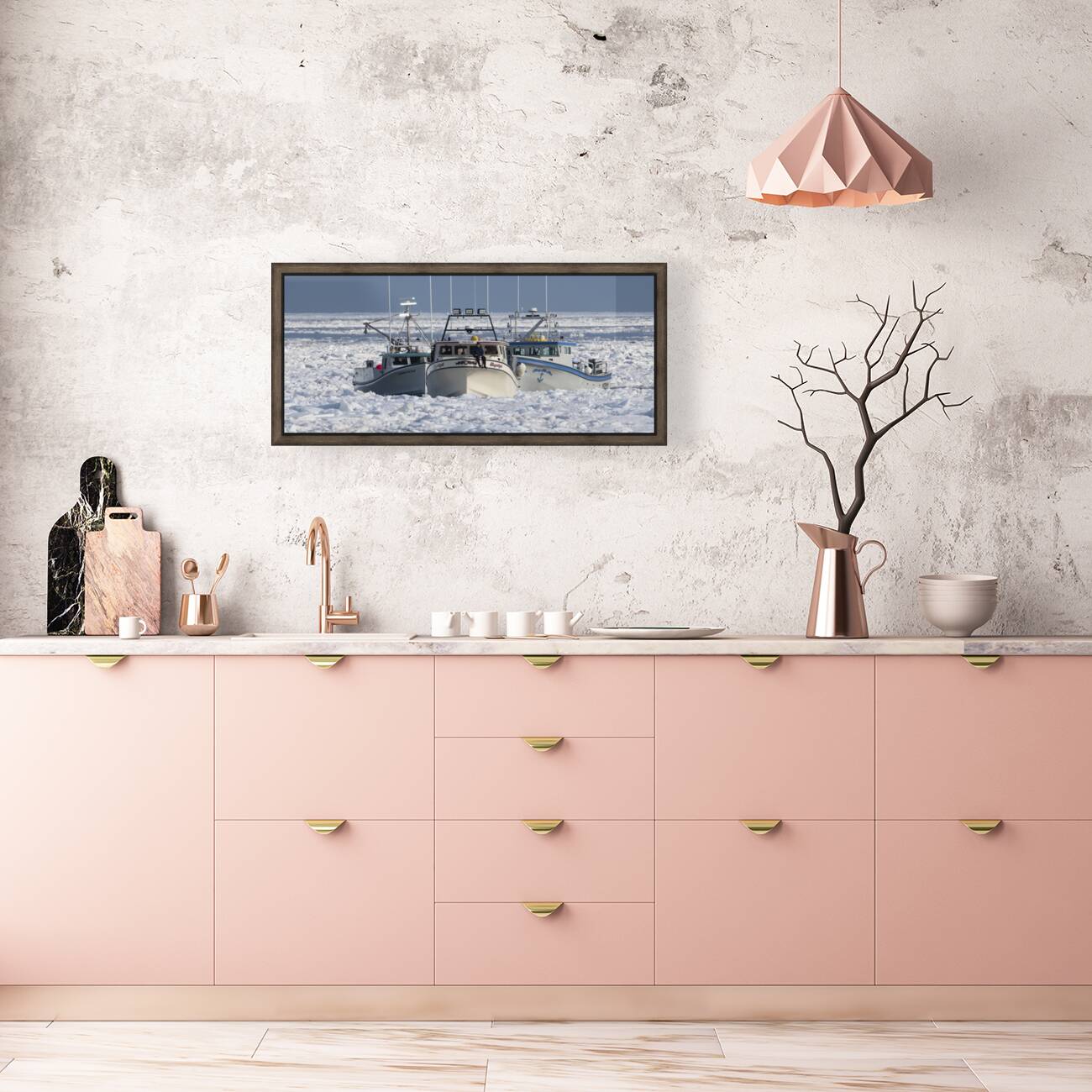 Imprimé jusqu’au bord et prêt à être accroché, avec un cadre flottant à l’arrière.