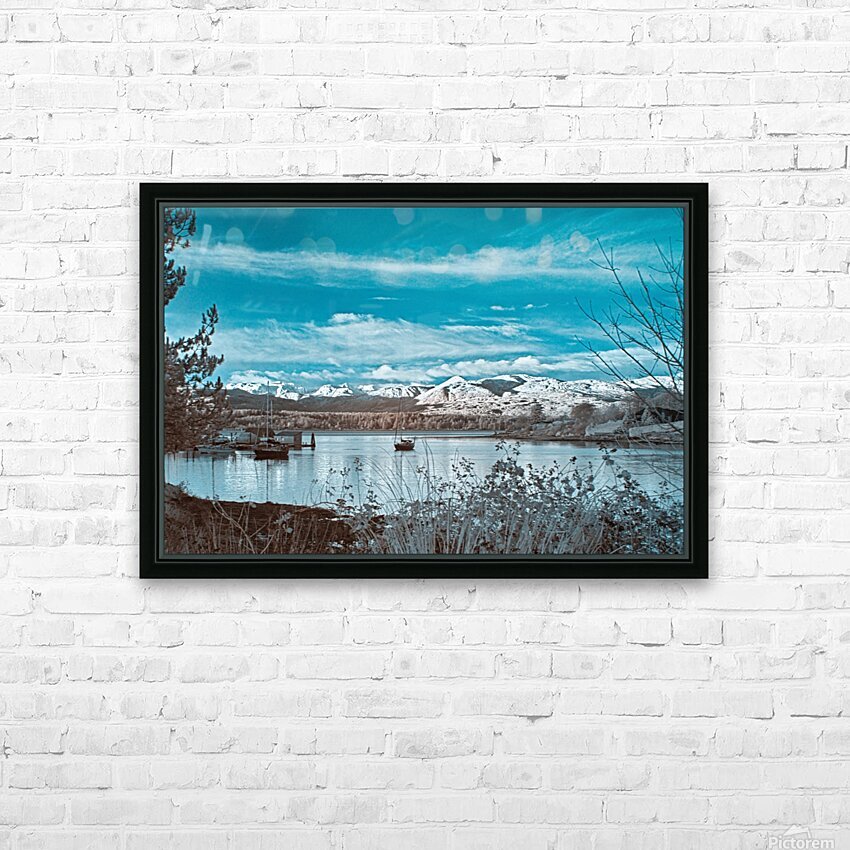 Impression pleine et montage avec un cadre flottant à l’arrière de 3/4 pouce d’épaisseur avec fil de suspension.