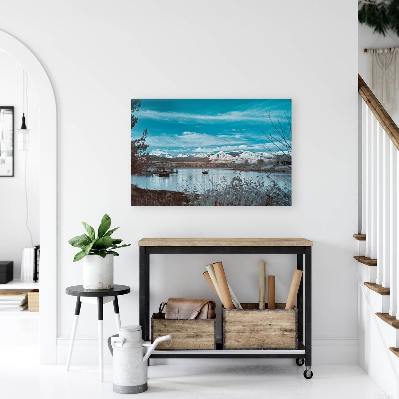 Imprimé jusqu’au bord et prêt à être accroché, avec 4 cylindres (entretoises) en aluminium ( les vis murales sont incluses )