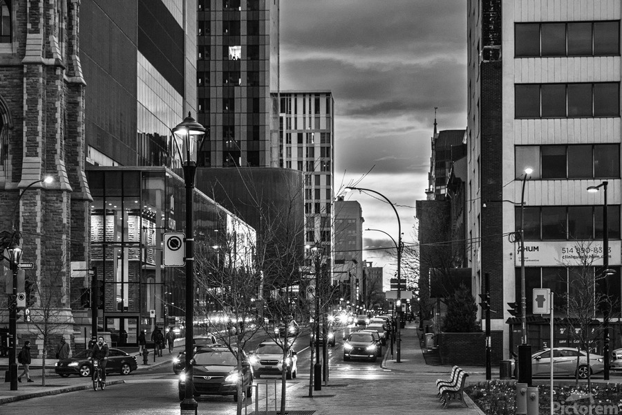 La fin d'une journée de travail dans le centre-ville de Montréal. The end of a work day in downtown Montreal.