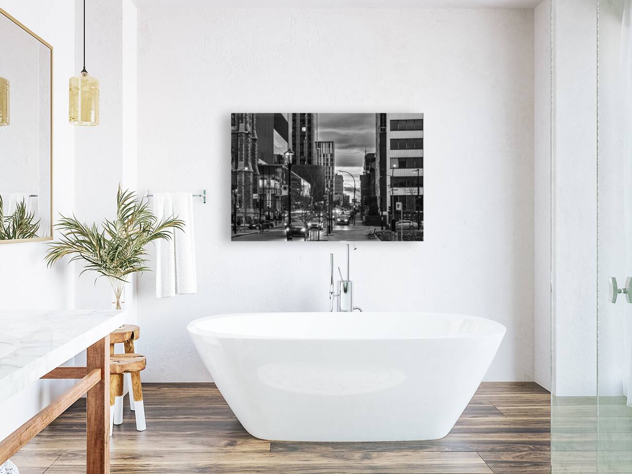 Toutes nos toiles étirées sont faites sur-mesure, à partir d’une toile d’exposition de 410g/m2 Bois large de 1.5 pouce de style “galerie”.