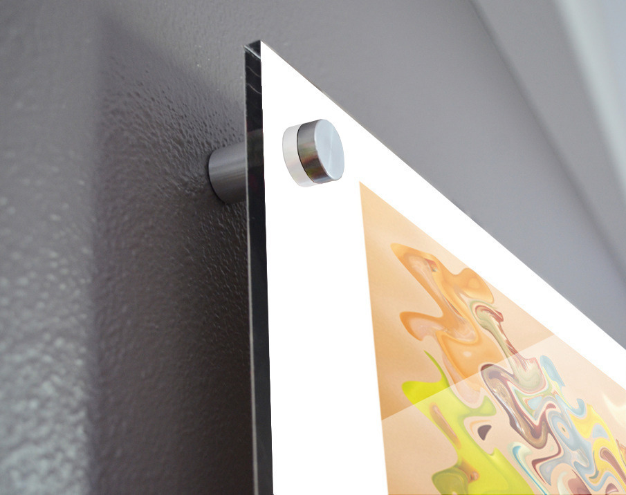 Impression sur acrylique avec entretoises ( cylindres métalliques )