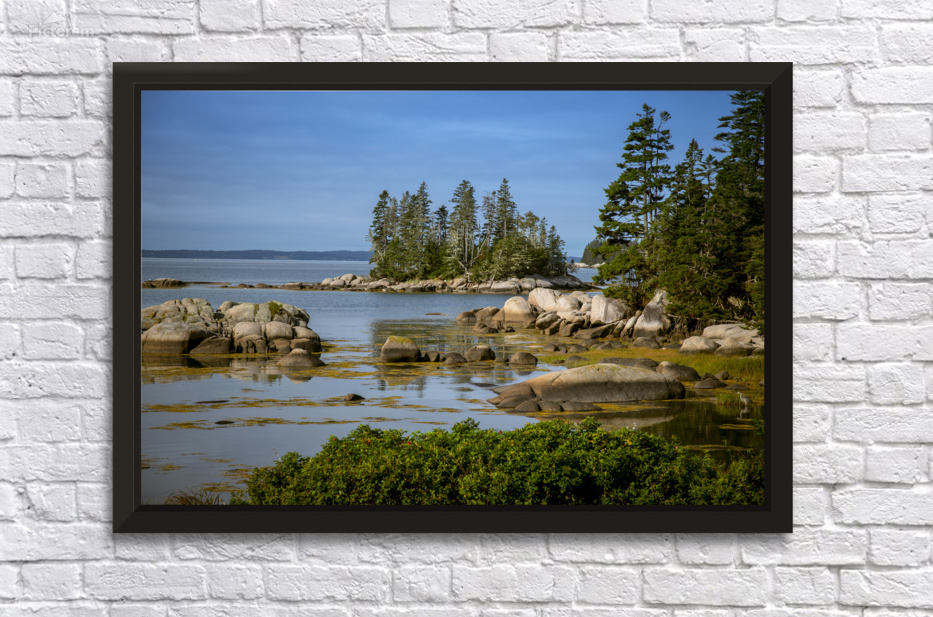 Pour obtenir "Calm Rocky Shore of Little Deer Isle in Maine" dans une impression encadrée.
