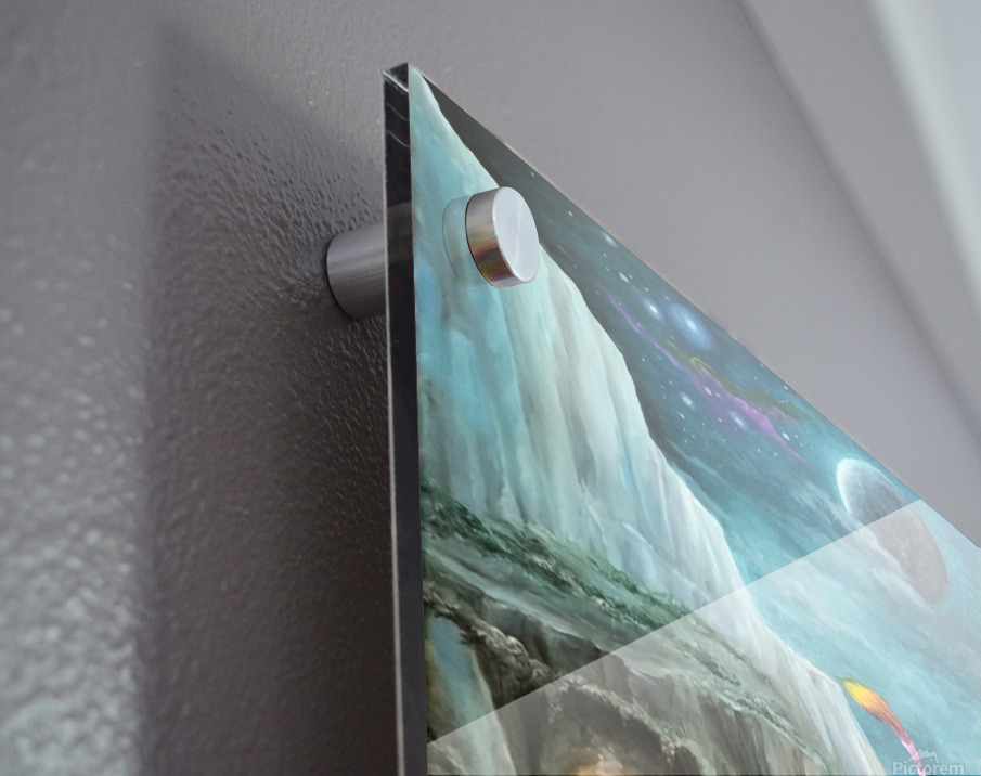 Impression sur acrylique avec entretoises ( cylindres métalliques )