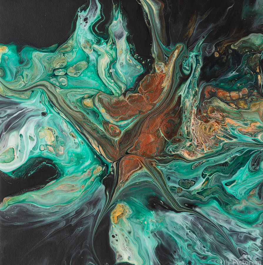 I am inspired by everything around me whether it is a breathtaking sunrise or a trail walk through fall trees with my husband and two dogs. I love to listen to music while I create my abstract pieces and it often will influence the brush strokes, colors or the way I tilt my canvas.