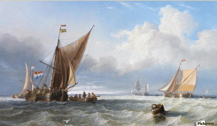 His name first appears as an exhibitor in 1838, when he contributed an oil painting, Shipping in the Bay of Naples, to the Society of British Artists. He showed both oil paintings and watercolours at the Royal Academy, his contributions including The Conqueror towing the Africa off the Shoals of Trafalgar (1841) and The Arrival of the Royal Squadron (1843).