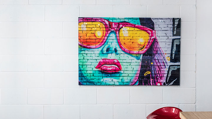 Print in full color with White Finish at the back Provide approx 90% opacity. Bright white finish — not recommended if hardware needs to be mounted behind.