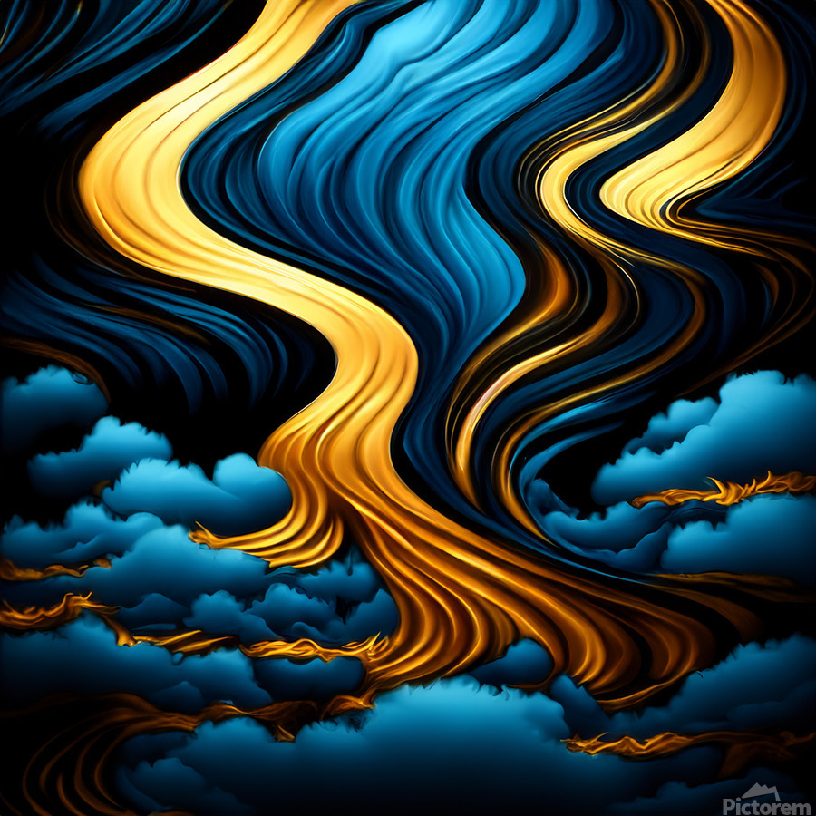 Blue Black & Gold Waves & Clouds by Crowntaj [+]