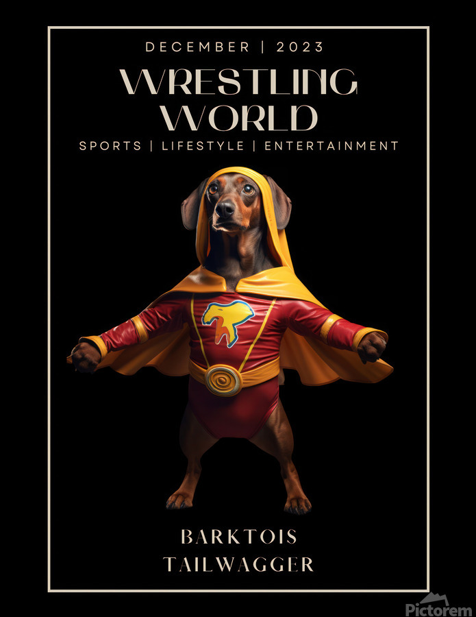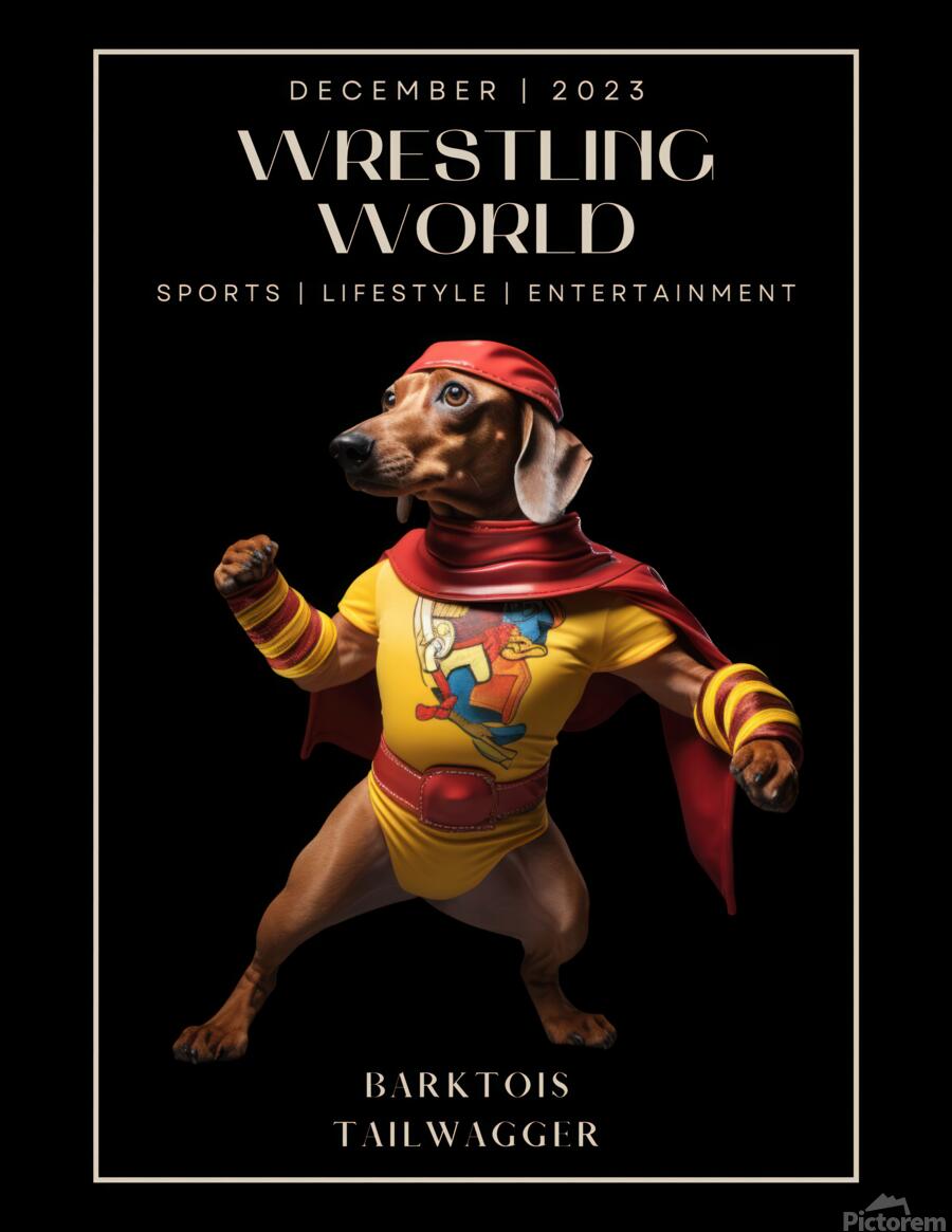 Adventure Magazine Cover with Surfing English Bulldog Poster-Red by Raquel Manteiga [+]