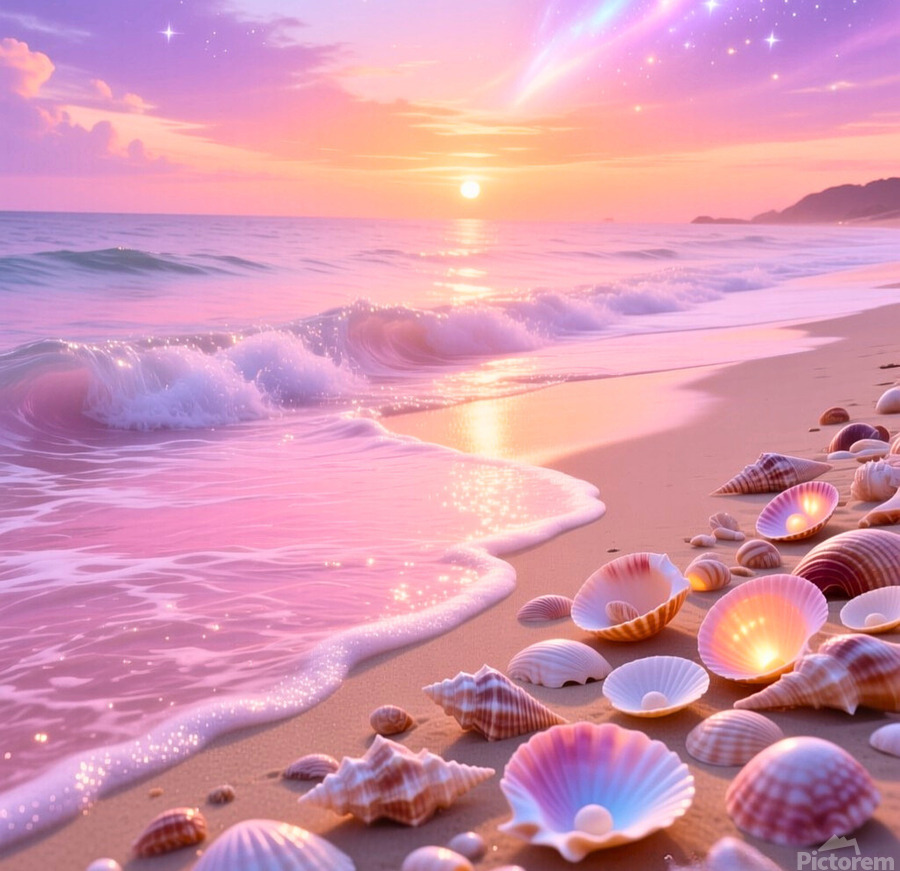 Dreamy Pink Sunset Beach with Seashells by Sihemsoso [+]